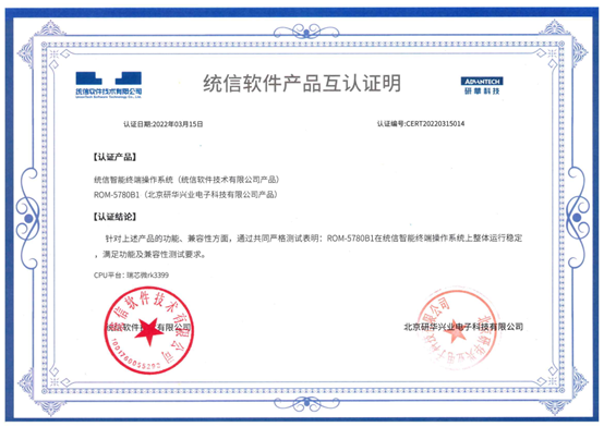 统信智能终端操作系统具有灵活定制、高效低耗的特点,在产品设计、操作体验上更加注重国人的手势触摸使用习惯,支持全系列CPU架构,具有良好兼容性、丰富软硬件生态、安全可信等特性,专为平板、移动终端、智慧屏、穿戴设备、自助设备等智能终端量身打造,可服务于金融、医疗、政府、教育、能源等行业,支撑各行业对操作系统的场景化需求。本次研华与统信软件进行互认证的产品,均采用瑞芯微方案,分别为两款核心模块(Computer-on-Module)-ROM-5780B1和ROM-5780,以及三款单板电脑(Single Board Computer)-RSB-4810、RSB-4710、RSB-3710。